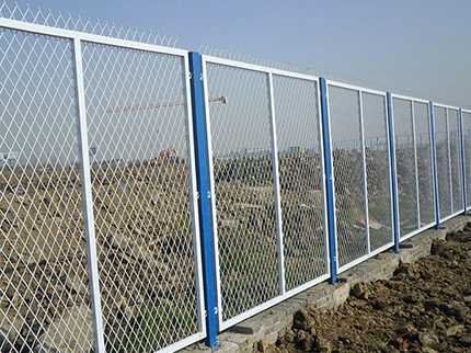 交通護(hù)欄網(wǎng)采用鋼板網(wǎng)、異型管、邊耳、圓管焊接成,連接附件與熱鍍管支柱固定。