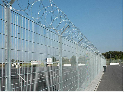 機(jī)場(chǎng)隔離網(wǎng)又稱作“Y型安全防御護(hù)網(wǎng)”,機(jī)場(chǎng)護(hù)欄網(wǎng)是由V型支架立柱,加強(qiáng)型焊接片網(wǎng),安全防盜連接件和熱鍍鋅刀片刺籠組成強(qiáng)度和安全防御性級(jí)別很高。近年來,被廣泛應(yīng)用在機(jī)場(chǎng),軍事基地等高安全場(chǎng)所。